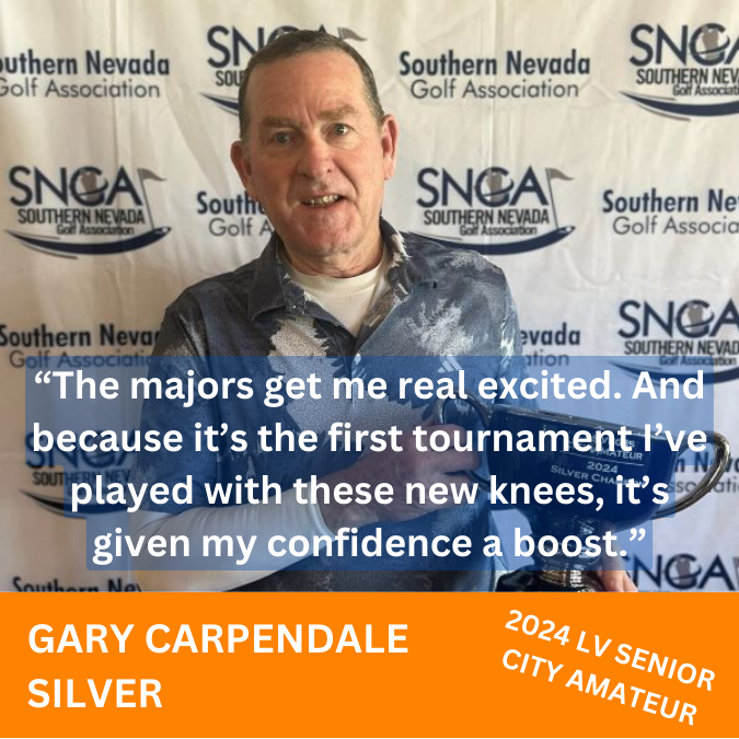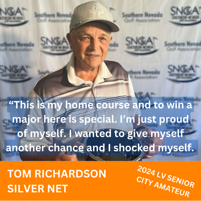 Daniel Laperriere (Senior) and Freddie Sarno (Silver) won titles in the 2024 Las Vegas Senior City Amateur. Gary Carpendale (Senior) and Tom Richardson (Silver) won net titles in the tournament held June 6-7, 2024, at Las Vegas Golf Club. It was part of the 3rd Annual Las Vegas City Am Week. The tournament is the SNGA’s second major of the year.—Bill Bowman, Las Vegas Golf Insider