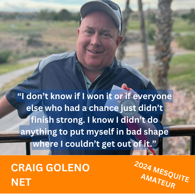 David Llewellyn (Championship), Todd Roberts (Senior) and Steven Fink (Silver) won scratch titles at the 2024 SNGA Mesquite Classic. Craig Goleno (Net), Dave Golder (Senior) and Bruce Chamberlain (Silver) captured net titles in the tournament held May 4-5, 2024, at the Palms Golf Club in Mesquite.–by Bill Bowman, Las Vegas Golf Insider.