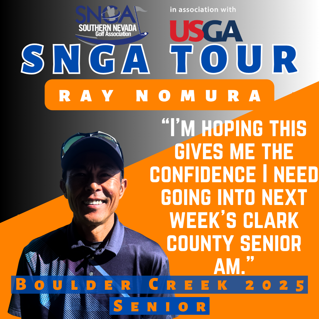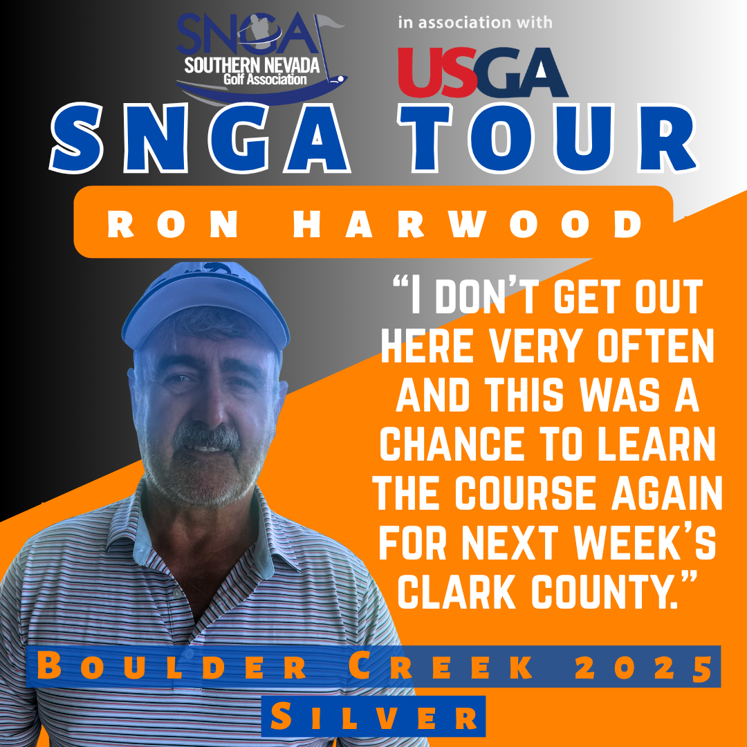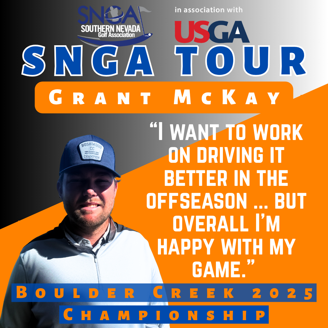 Grant McKay (Championship), Ray Nomura (Senior), Ron Harwood (Silver) and Anthony Becker (Net) won titles in the 2025 SNGA Tour Boulder Creek tournament. The one-day event was held Oct. 15, 2025, at Boulder Creek Golf Club and annually serves as the perfect prep for the season’s final major, the Clark County Amateur.—by Bill Bowman, Las Vegas Golf Insider