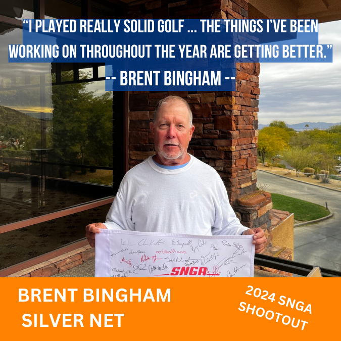 Preston Harris (Championship), Todd Roberts (Senior) and Gary Carpendale (Silver) won gross titles at the 2024 SNGA Shootout. Jake Barry (Net), Brian Freymueller (Senior) and Brent Bingham (Silver) won net titles in the tournament held Nov. 24-25, 2024, at Red Rock Country Club and Arroyo Golf Club.
