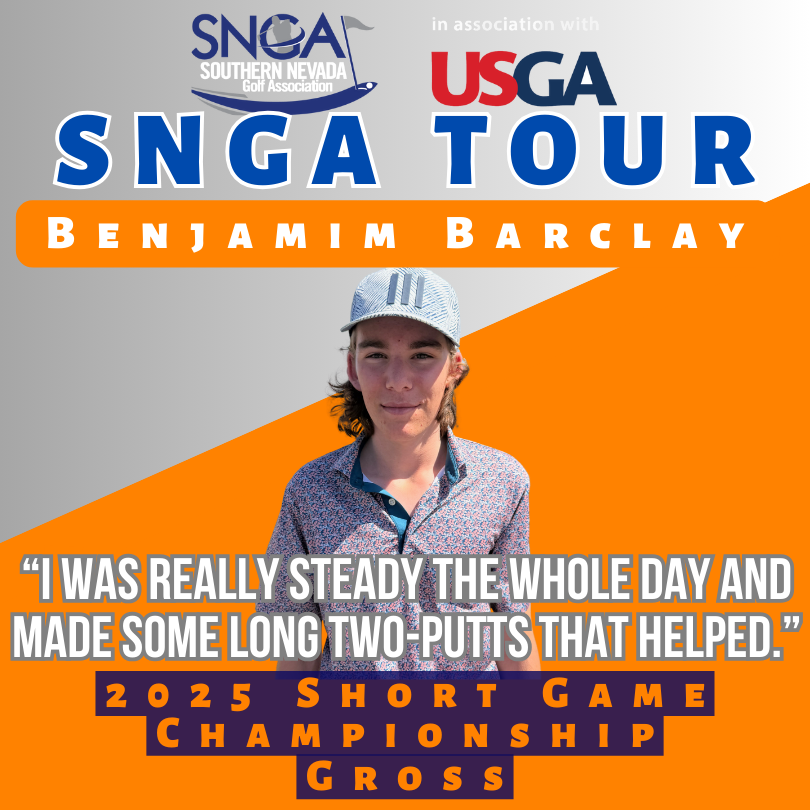 LAS VEGAS, NV (April 25, 2025)–Benjamin Barclay (Championship), Marty Pena (Senior), Ron Harwood (Silver) and Dave Haddock (Net) won titles at the 2025 Short Game Championship. The tournament was held April 25, 2025, at Eagle Crest Golf Club.–by Bill Bowman, Las Vegas Golf Insider staff