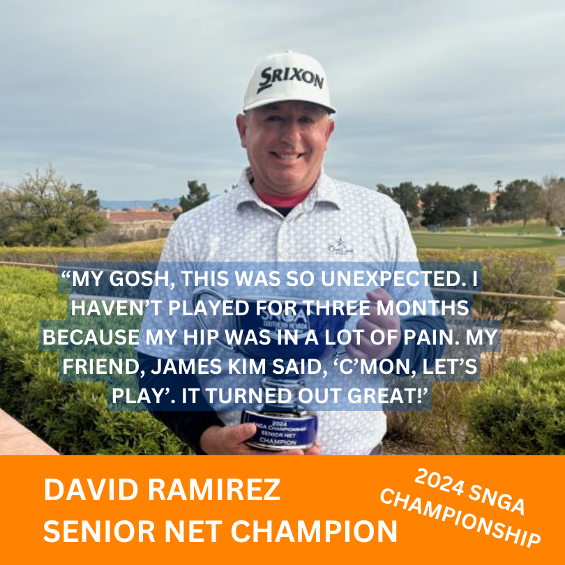 Joe Sawaia (Championship), Todd Roberts (Senior) and Chris Cookson (Silver) won gross titles at the 2024 SNGA Championship, the year’s first major. Joe Noya (Net), David Ramirez (Senior) and Stephen Sitar (Silver) captured net titles in the tournament held March 9-10, 2024 at Highland Falls and Palm Valley golf clubs. –by Bill Bowman, Las Vegas Golf Insider